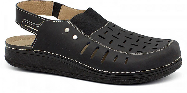 Мужские ортопедические сандалии - ыполненная из натуральной кожи модель для прогулок и повседневного ношения. Закрытый мыс убережет пальцы ног от случайных повреждений, а широкий ремешок по ахиллову сухожилию и эластичная вставка по верху обуви обеспечат надежную фиксацию и регулировку обуви по подъему. Широкая носочная часть позволяет рекомендовать эту модель для людей с проблемными ногами (плоскостопие, натоптыши, деформированные пальцы, пяточные шпоры).