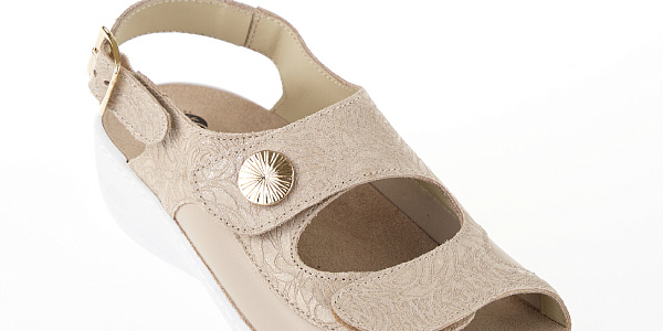 Регулируемая полнота, подходит на среднюю и широкую стопу, также подойдет на высокий подъем. Мягкие, съемные с супинатором и дополнительным пяточным амортизатором. Покрытие велюровая кожа. Стелька толстая имеет углубление в области пятки. Верх из натуральной замшевой кожи комбинированной кожей с принтом и декоративными элементами украшений.Имеется мягкая эластичная вставка в области сустава 1го пальца. Модель имеет круговую прошивку. При помощи двух ремней на застежке липучке и пяточного ремня с застежкой и вставкой в виде резинки.