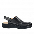 Верх выполнен из натуральной гладкой кожи чёрного цвета, подкладка, также кожаная, обладает мелкой перфорацией, обеспечивающей непрерывный влаго- и теплообмен при ходьбе. Несъёмная ортопедическая стелька с покрытием из натуральной кожи дополнительно амортизирует каждый шаг, оберегает от развития деформационных процессов в ногах.